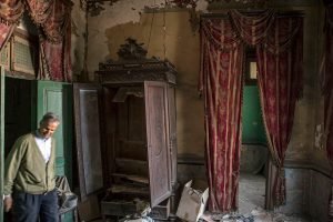Dusty light filters through dirt-smeared windows in a hammam apparently frozen in time. Upstairs are the apartments of the family who owned it, redolent in faded, turn-of-the-century drapings. Carved, wooden, art nouveau doors open up onto rooms knee-deep in discarded items, some of them treasures: elaborately handwritten 19thcentury manuscripts containing instructions on how to cast spells; a vintage mid-20th century Peugeot car, one inquisitive headlight peeking from a half-open garage door; a canvas by a famous Tunisian painter well-appreciated in his time; and black-and-white portraits of immaculately-presented men and women topped…