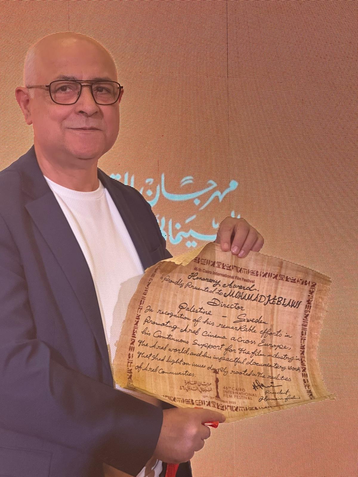 The 46th Cairo International Film Festival (CIFF) feted Palestinian-Swedish filmmaker Mohamed Keblawi, founder of the Malmö Arab Film Festival (MAFF), in a ceremony celebrating his pivotal role in advancing Arab cinema across Northern Europe and Scandinavia.